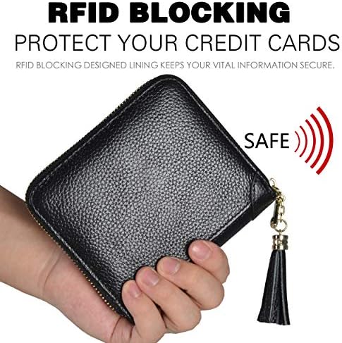 Easyoulife Womens Credit Card Holder Wallet Zip Leather Card Case RFID Blocking